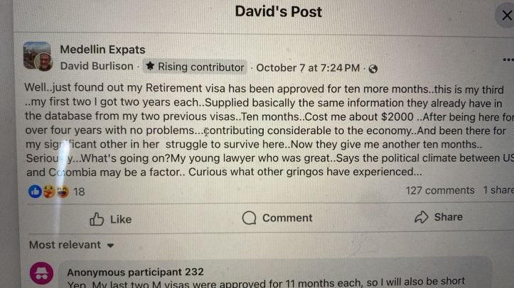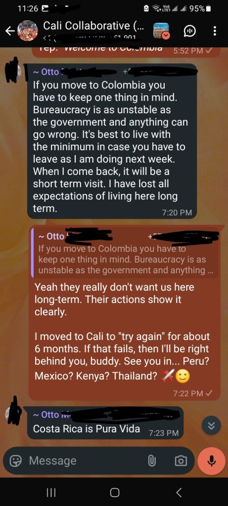 Partially because of these visa-related frustrations, several people I know personally have either left Colombia entirely, or are in the process of doing so. In fact, by sheer coincidence, THREE friends and acquaintances signalled their intent within 24 hours of each other.
